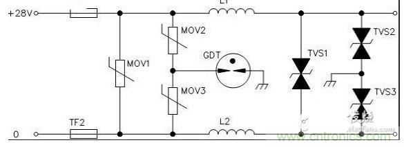 【導讀】本文介紹的是一款直流電源防雷電子電路設計圖,該電路采用常規(guī)的兩級設計方式,第一級用來吸收較大的浪涌,后級采用TVS來對殘壓進一步的吸收。詳情請看下文。