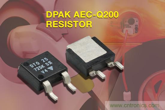 DTO25是無感器件,阻值從0.016Ω到700kΩ,其外形尺寸為8.2mm x 7.3mm的面積和2.8mm的厚度,在DPAK封裝內能承受比競爭元器件多10倍的能量,即承受10-5秒脈沖的最高5kW功率和0.1秒脈沖的10J能量。