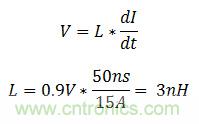 用電子負(fù)載測(cè)試電源的瞬態(tài)響應(yīng)很常見。對(duì)許多系統(tǒng)軌(如服務(wù)器的3.3V或5V總線)而言,電子負(fù)載很容易配置為在2-10A/us的范圍內(nèi)汲入電流的模式。但是,內(nèi)核電壓可能需要轉(zhuǎn)換速率比這些水平高兩個(gè)數(shù)量級(jí)。高轉(zhuǎn)換速率測(cè)試中的一個(gè)主要限制因素是負(fù)載路徑中的寄生電感。要以300A/us的速率為0.9V輸出轉(zhuǎn)換15A的電流,公式1計(jì)算出的最高電感是3nH。作為參考,成圈狀通過電流探頭的16級(jí)導(dǎo)線的1英寸片可將20nH的電感添加到負(fù)載路徑中。很明顯,需要另一種電流汲入方法。