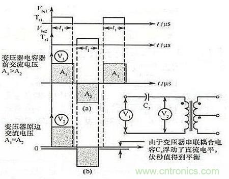 如果要這種不平衡的波形驅(qū)動(dòng)變壓器,將會(huì)發(fā)生偏磁現(xiàn)象,致使鐵心飽和并產(chǎn)生過(guò)大的晶體管集電極電流,從而降低了變換器的效率,使晶體管失控,甚至燒毀。