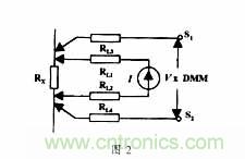 在這種饋線電阻補(bǔ)償法測(cè)量小電阻電路中,測(cè)量精確度主要取決于恒流源電流I的精確度和饋線電阻RL的大小是否相等。電路中的運(yùn)放可選用四通用單運(yùn)放(LM324)。當(dāng)用此法測(cè)量阻值小于0.5Ω的電阻時(shí),應(yīng)確保RL完全相等(注意饋線材料,長(zhǎng)短及焊點(diǎn)的大小)。