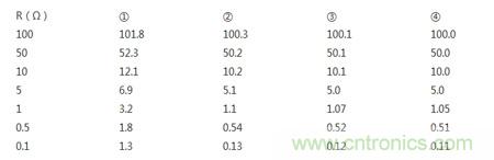 比較分四組進(jìn)行:①用普通數(shù)字萬(wàn)用表測(cè)量;②用四線測(cè)量(借助于數(shù)字萬(wàn)用表本身的恒流源電流);③用四線測(cè)量(用外加的恒流源電流);④饋線補(bǔ)償測(cè)量。