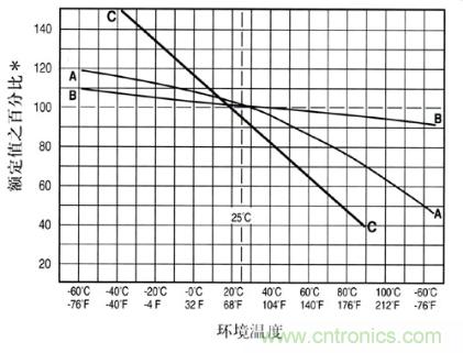 如圖所示為溫度降額曲線(xiàn),以曲線(xiàn)A為例,在溫度為80℃時(shí),Tf為0.75。因此,若不考慮其他特性的影響,對(duì)3A的應(yīng)用,至少應(yīng)選擇4A(3/0.75=4)的保險(xiǎn)絲。