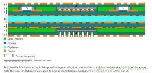 對(duì)于開(kāi)發(fā)者來(lái)說(shuō)目前有幾種嵌入有源元件的方式:模塊電路板(IMB)、嵌入式晶圓級(jí)封裝(EWCP)、嵌入式晶片堆層(ECBU)和高分子嵌芯片(CIP)。最后一種方法可以把薄片晶圓封裝直接嵌入到堆疊的介質(zhì)層上,而不是使用通過(guò)鉆孔或走線連接到核心材料的凹槽,這種方法也支持FR-4多層電路板。