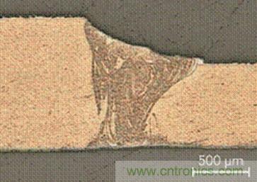 圖2 ,鋁硅涂層被剝除后的鋼板邊緣