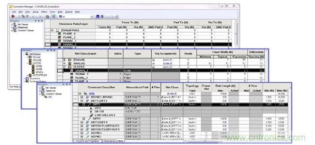 當(dāng)今的關(guān)鍵高速設(shè)計(jì)異常復(fù)雜,如果沒(méi)有有效的手段來(lái)管理約束規(guī)則,則對(duì)走線(xiàn)、拓?fù)浜托盘?hào)延遲等方面的設(shè)計(jì)、約束和管理將會(huì)變得異常困難。為了在第一次迭代中就構(gòu)建出成功的產(chǎn)品,必須在設(shè)計(jì)流程的早期設(shè)置約束規(guī)則,以便設(shè)計(jì)達(dá)到要求的目標(biāo)。良好的約束規(guī)則管理可防止您使用價(jià)格高昂或無(wú)法采購(gòu)到的元件,并且最終確保電路板符合性能和制造要求。