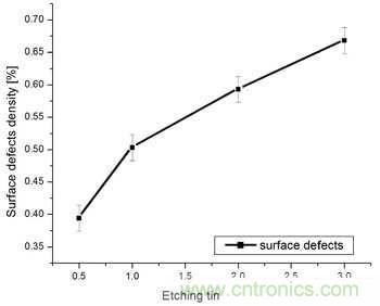 圖2.表面缺陷密度與蝕刻時間呈函數(shù)關(guān)系。