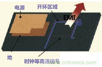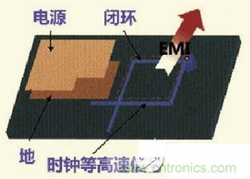 時鐘信號等高速信號網(wǎng)絡(luò),在多層的PCB走線的時候一旦產(chǎn)生了開環(huán)的結(jié)果,將產(chǎn)生線形天線,增加EMI的輻射強度。