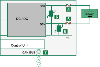 4.高壓直流側(cè)過電流保護:有助于消除由于 OCB 或電池組中的故障或交通事故等外部事件造成的短路危險。