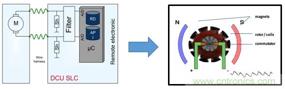 電機(jī)有磁極、轉(zhuǎn)子線圈、換向器組成。根據(jù)右手定律轉(zhuǎn)子線圈通電后再磁極磁場的作用下產(chǎn)生運(yùn)動。運(yùn)動到磁場邊緣是磁場變?nèi)?,電動勢減小,電流增大。換向器改變轉(zhuǎn)子線圈的電流方向,重新進(jìn)入磁場電動勢增大,電流減小。轉(zhuǎn)子線圈不斷轉(zhuǎn)動、電動勢和電流不斷變化,從而紋波不斷產(chǎn)生。所以紋波是電機(jī)的固有特性,通過計算紋波的個數(shù)就能計算出轉(zhuǎn)子換向的次數(shù),就能計算出窗戶的相對位置,結(jié)合時間就能得出電機(jī)的轉(zhuǎn)速。
