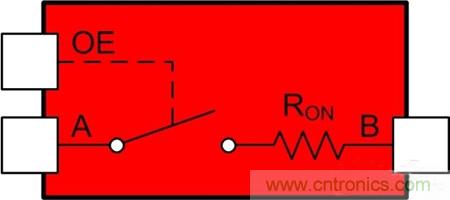 通過(guò)輸出使能引腳 (OE),用電壓來(lái)控制這個(gè)開(kāi)關(guān);只需在高電平關(guān)閉開(kāi)關(guān),在低電平時(shí)打開(kāi)開(kāi)關(guān)。(對(duì)于低電平有效OE引腳來(lái)說(shuō),恰恰相反;這些引腳上通常會(huì)有標(biāo)簽進(jìn)行標(biāo)注。)RON 是開(kāi)關(guān)的內(nèi)部電阻。A和B到開(kāi)關(guān)的兩個(gè)連接點(diǎn)。