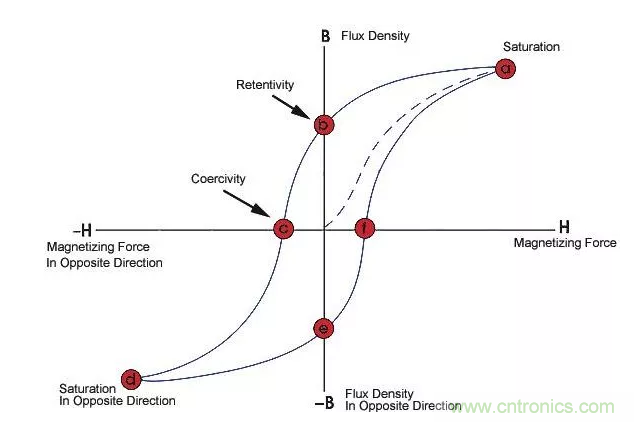 增加磁芯的磁導(dǎo)率,可以提高電感值,通常使用鐵磁性材料做磁芯。鐵磁性材料存在磁飽和現(xiàn)象,即當(dāng)磁場(chǎng)強(qiáng)度超過一定值時(shí),磁感應(yīng)強(qiáng)度不在增加,即磁導(dǎo)率下降了,也就是電感下降了。在額定電感值范圍內(nèi),允許的最大電流即為飽和電流。