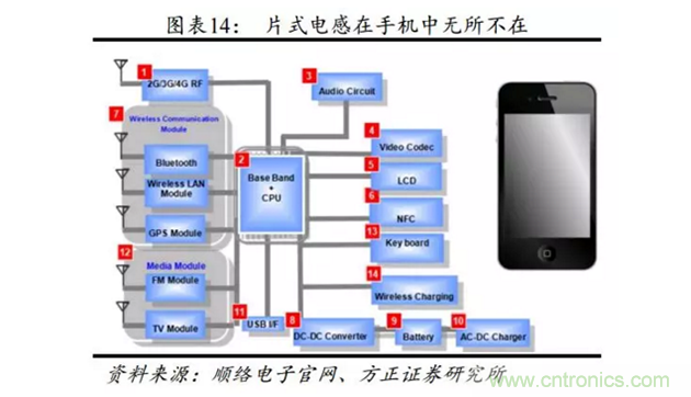 磁性產(chǎn)品性能不輸村田、TDK,被動元器件全球第三,緊追村田、TDK。加之國內(nèi)手機廠商崛起,憑借技術與供貨渠道雙重優(yōu)勢穩(wěn)固市場地位,為傳統(tǒng)電感內(nèi)資絕對龍頭。