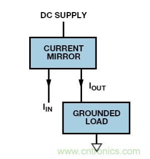 若電流或電壓輸入參考地,則必須使用電平轉換。有多個電路可以實現;而圖 8 中的系統在很多場合下都適用。這款簡單的電路采用接地電流源驅動直流電源上的電流鏡,從而驅動負載。注意,電流鏡可能有增益,因此信號電流不需要像負載電流那么高。