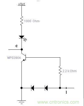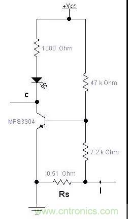 如果簡單的用三極管導通與截止來檢測電流的話,三極管開啟要0.7V左右,電流比較小的時候需要串比較大的采用電阻,同時浪費較大的反饋電壓,如上圖方法,可以用比較小的電阻,消耗很小的電壓就能檢測到電流I,通過調整三極管基機電阻可以調整檢測的靈敏度。這個電路可以用在充電器等需要顯示有沒有充電電流的地方。