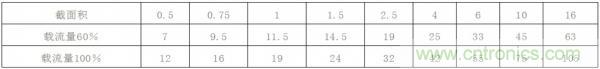表3 允許流通電流與導(dǎo)線截面積關(guān)系經(jīng)驗值