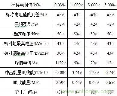 因此規(guī)定當充電時,功率單元驅動電路的工作電壓從零上升到額定值得時間不小于0.5s,整體充電時間控制在10s左右。基于這個限制條件并結合表2,本工程充電電阻可選擇3000,650kJ。