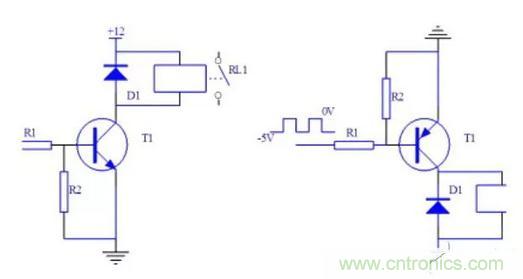 當晶體管用來驅(qū)動繼電器時,必須將晶體管的發(fā)射極接地。具體電路如下:
