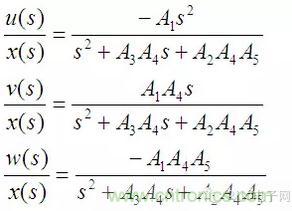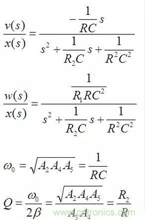 上面三個(gè)式子分別對應(yīng)高通、帶通和低通濾波器,如果將u、v、w三路信號加權(quán)疊加則可以組成任意的二階系統(tǒng)。