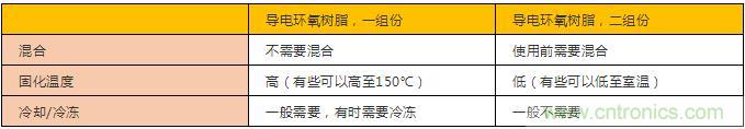兩種導(dǎo)電環(huán)氧樹脂對(duì)比如下表: