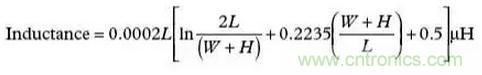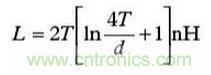 帶狀電感是另外一種需要考慮的寄生效應(yīng),它是由于印制線過(guò)長(zhǎng)或缺乏接地平面引起的。式(2)示出了計(jì)算印制線電感(Inductance)的公式。參見(jiàn)圖6。