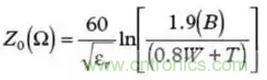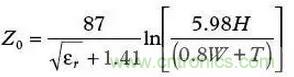 公式(6)可以用于計(jì)算一塊FR4板的特征阻抗。