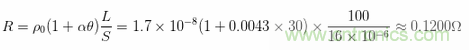 其次,我們需要知道保護性中性線電纜的電阻是多少。這個值可以根據(jù)具體線路參數(shù)來考慮。方便起見,不妨先規(guī)定這條保護性中性線電纜的長度是100米,電纜芯線截面是16平方毫米,它的工作溫度是30攝氏度,則它的電阻為: