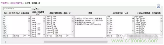 在Digi-Key網(wǎng)站,可以根據(jù)不同二極管類型及設(shè)計參數(shù)的要求,篩選合適的二極管。