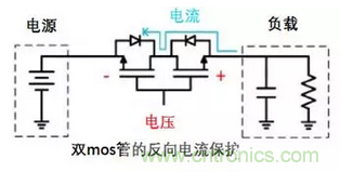 如下所示,利用2個MOS管背靠背地連接是一個不錯的解決方案。當(dāng)2個MOS管關(guān)閉,它們可以阻斷兩個方向電流的流通。與二極管的解決方案相比,MOS管可以支持更低的電源壓降供應(yīng)給負載。但是,如果要實現(xiàn)這種方案,需要多個元器件配合,使得電路會在電路板上占用更多的空間。