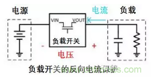 與MOS管一樣,負載開關(guān)可在關(guān)閉時阻止兩個方向上的電流(如下圖設(shè)計)。