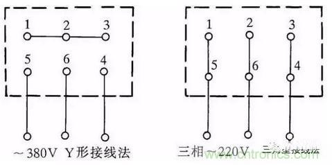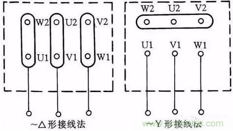 圖1:三相交流電動(dòng)機(jī)Y形和△形接線方法