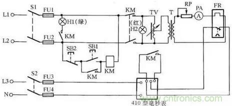 圖18所示是自制的絕緣檢測(cè)器線路,它既可用作線路絕緣監(jiān)視,又可代替兆歐表檢查電機(jī)、測(cè)電器的絕緣電阻。當(dāng)合上隔離開關(guān)QS,在相電壓作用下,整個(gè)繞組和接地外殼之間的泄漏電流流過絕緣層和電阻R1、R2。