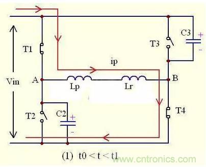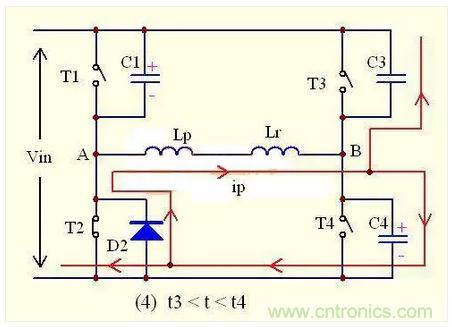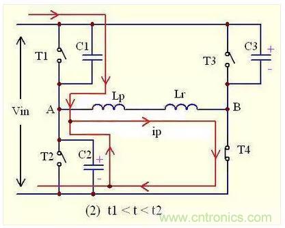T1,T2稱為超前臂開(kāi)關(guān)管,T3,T4稱為滯后臂開(kāi)關(guān)管