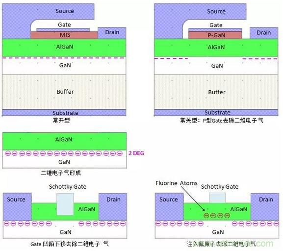 【導讀】這里的一張圖就能讓大家搞清楚GaN功率管的結(jié)構及工作原理,常關型GaN功率管通常稱為增強型GaN功率管,設計增強型GaN功率管有四種方法。