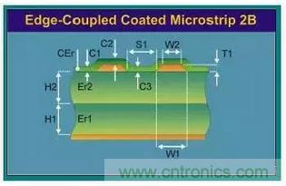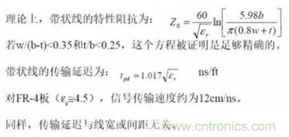 帶狀線就是一條置于兩層導電平面之間的電介質中間的銅帶。如果線的厚度和寬度,介質的介電常數(shù),以及兩層接地平面的距離都是可控的,則線的特性阻抗也是可控的,且精度在10%之內。