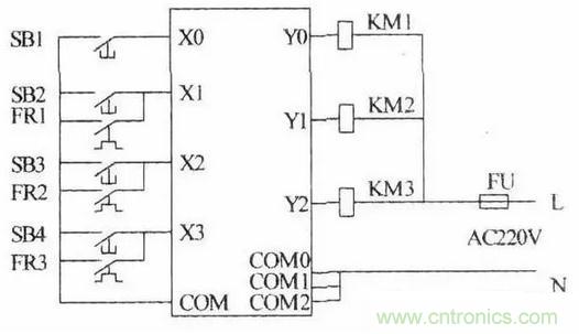 繼電器電路圖中的中間繼電器和時間繼電器的功能用PLC內(nèi)部的輔助繼電器和定時器來完成,它們與PLC的輸入繼電器和輸出繼電器無關(guān)。