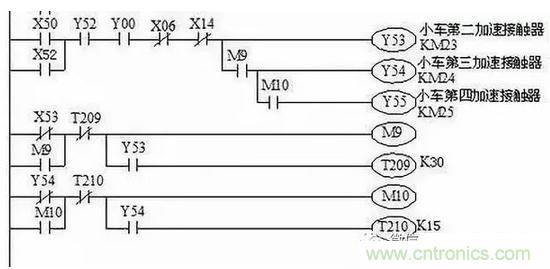 根據(jù)主電路中控制負載的控制電器的主觸點文字符號,在PLC的I/O接線圖中找出控制該負載的接觸器線圈的輸出繼電器,再在梯形圖和指令語句表中找出控制該輸出繼電器的線圈及其相關(guān)電路,這就是控制該負載的局部電路。