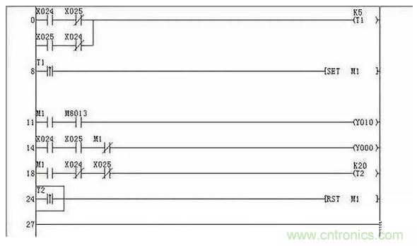 在梯形圖和指令語句表中,很容易找到該輸出繼電器的線圈電路及其得電、失電條件,但引起該線圈的得電、失電及其相關(guān)電路就不容易找到,可采用逆讀溯源法去尋找: