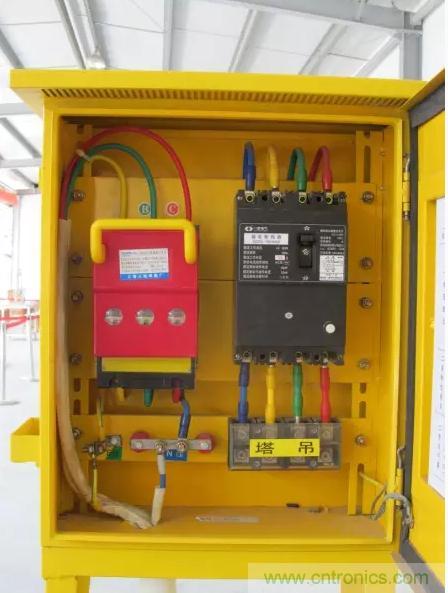 5、總配電箱的電器具備電源隔離,正常接通與分?jǐn)嚯娐罚约岸搪?、過載、漏電保護(hù)功能。(JGJ46-2005第8.2.2條)