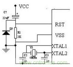 單片機利用外部12MHZ晶振構(gòu)成振蕩電路作為時鐘源,時鐘電路的原理如下圖。