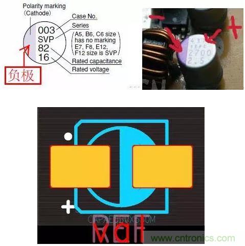 對于貼片的電解電容和固態(tài)電容,有黑色標志處為負極。