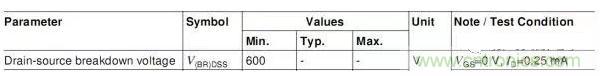 這個參數(shù)是有條件的,這個最小值600V是在Tj=25℃的值,也就是只有在Tj=25℃時,MOSFET上電壓不超過600V才算是工作在安全狀態(tài)。