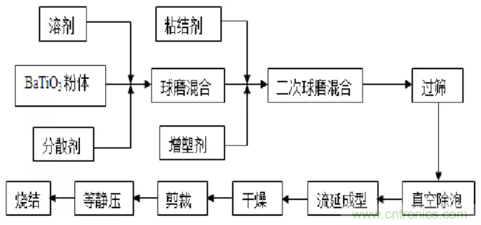 圖3 多層陶瓷電容器生產(chǎn)工藝流程