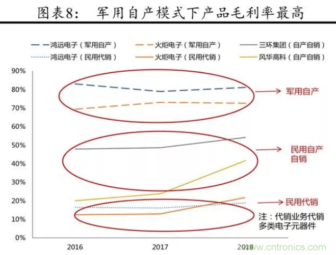 軍用上市 MLCC 企業(yè)受到代理業(yè) 務(wù)本身性質(zhì)的影響,利潤并不高。
