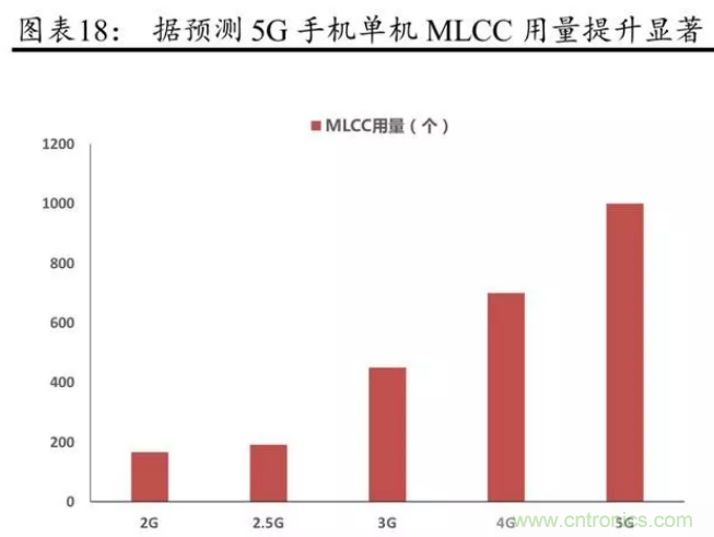 另根據(jù) Kemet 數(shù)據(jù),iPhoneX 單部手機(jī)對 MLCC需求量超過 1000 只,而 iPhone 6S 對 MLCC需求量為 500 只左右。隨著 OPPO、VIVO、小米、華為等逐步專注于生產(chǎn)中高端機(jī)型,有望推動上游 MLCC 需求獲得持續(xù)較快的增長。