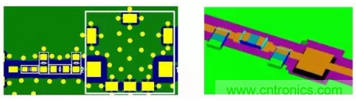 過(guò)孔是引起RF 通道上阻抗不連續(xù)性的重要因素之一,如果信號(hào)頻率大于1GHz,就要考慮過(guò)孔的影響。