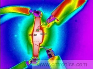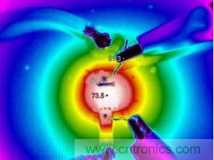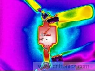 將10cmX10cm的二層PCB板的覆銅改為1OZ,重復(fù)上面實驗,測量的溫度如下圖所示。