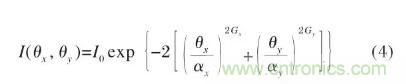 式中:I0為z軸上光強(qiáng);θx和θy分別是光束與x-z面和y-z面夾角;αx和αy分別為x和y方向上高斯強(qiáng)度1/e2點(diǎn)的遠(yuǎn)場(chǎng)束散角;Gx和Gy分別是x和y方向上的“超級(jí)高斯因子”,其值為1時(shí),是典型的高斯分布。對(duì)于實(shí)際LD,其快軸和慢軸方向上的超高斯因子Gx和Gy均大于1,表征實(shí)際輸出的激光束中除基模外還包含其他的高階模分量。