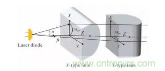 圖3 柱面透鏡對(duì)LD光束準(zhǔn)直示意圖