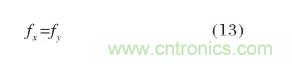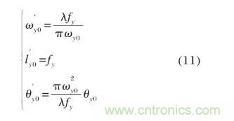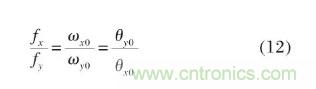由此可知對(duì)于柱面準(zhǔn)直透鏡,焦距f越大,準(zhǔn)直后的出射光束束腰半徑越大且束散角越小。為實(shí)現(xiàn)光束的進(jìn)一步整形,應(yīng)使得快軸、慢軸方向的光束在準(zhǔn)直后束腰半徑、束散角盡可能相近,由公式(10)、(11)可得X、Y型柱面鏡的焦距關(guān)系需滿足:
